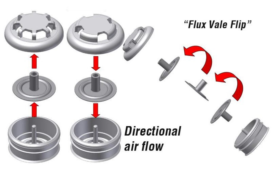 When putting the caps on, the MALE POST from the Base must be aligned with the FEMALE alignment hole on the resistance cap. Not aligning this WILL CAUSE YOUR MASK NOT TO WORK! It simple causes the “FLUX” valve plunger to not seal correctly.
