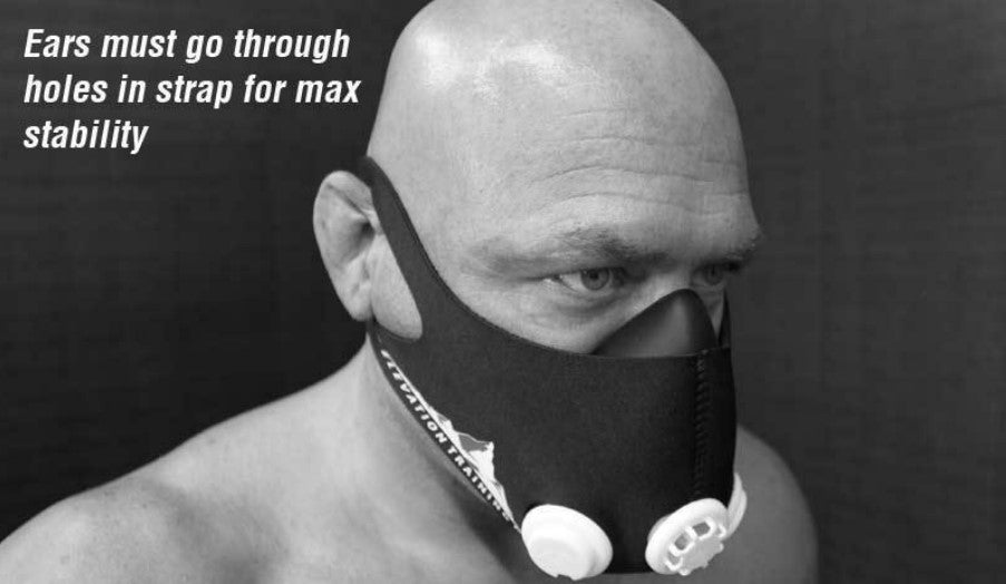Training Mask 2.0 Also comes with a head strap that goes over the head and around the ears. This is for long runs where the Training Mask could become slippery on the face or HIIT Training where the user may jar, rack or jerk the Training Mask while training
